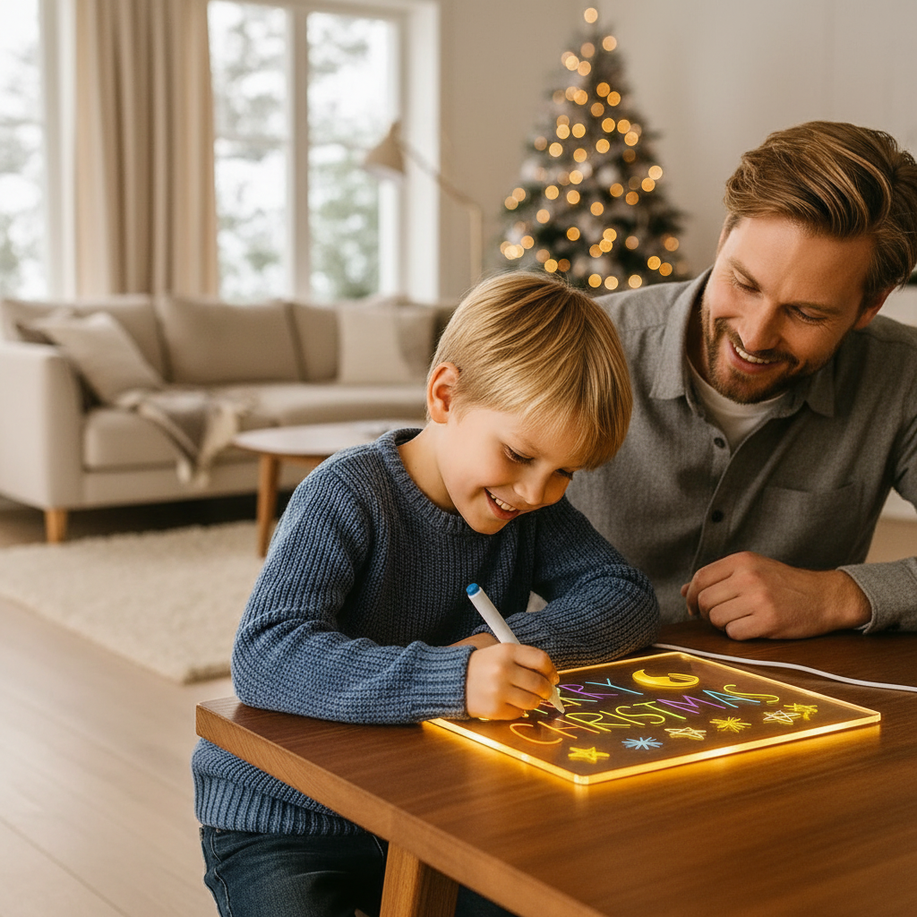 Katso lapsesi mielikuvituksen heräävän henkiin TaikaValon avulla - LED-piirustustaulu, joka muuttaa yksinkertaiset luonnokset hehkuviksi mestariteoksiksi. Ruudutonta luovuutta, jota lapset rakastavat ja vanhemmat luottavat.