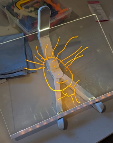 Katso kun heidän yksinkertaiset luonnoksensa hehkuvat kirkkaalla LED-valolla ja muuttuvat loistaviksi mestariteoksiksi. Tämä hauska, vuorovaikutteinen kokemus rohkaisee luovuutta ja antaa nuorille taiteilijoille mahdollisuuden kokeilla, ilmaista itseään ja hioa taitojaan - samalla kun he pitävät hillittömästi hauskaa!
