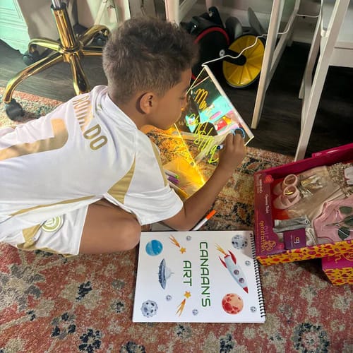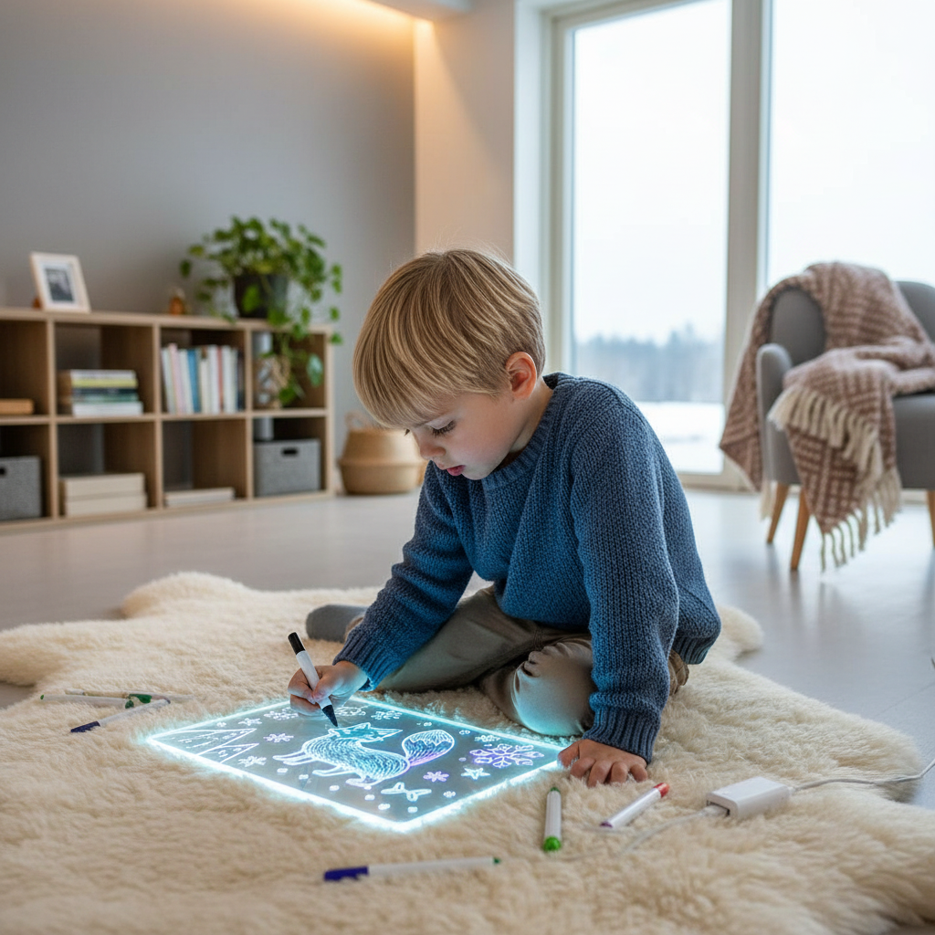 "Lastentoimintaterapeuttina suosittelen tätä LED-piirustustaulua auttamaan lapsia vahvistamaan hienomotorisia taitoja, parantamaan käden ja silmän koordinaatiota ja säilyttämään keskittymiskyvyn - ilman ruutuja. Hehkuva pinta tarjoaa välitöntä visuaalista palautetta, joka pitää lapset pidempään kiinnostuneina, tehden siitä erityisen hyödyllisen ADHD-, autismi- tai sensoriikkahaasteista kärsiville lapsille. Tämä ei ole vain leikkiä - se on terapeuttista oppimista hauskan verhossa."